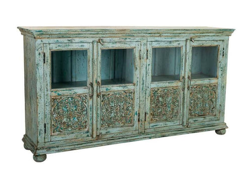 Ventoriq 160x200 ICTC15428 LED Adult Bed with Blue Fabric and Light Solid Wood Legs -